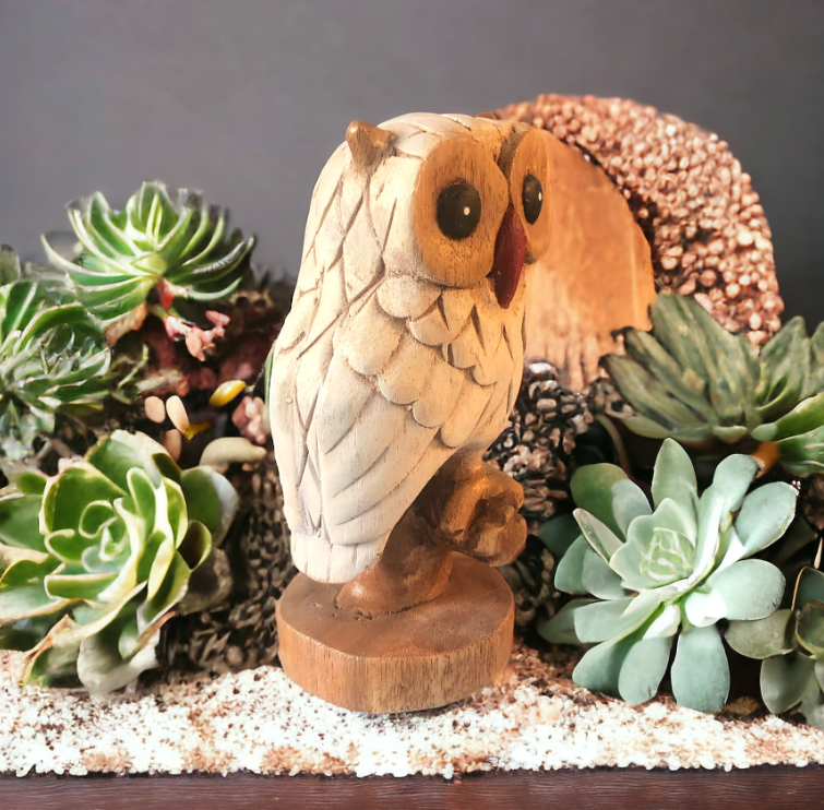 L'aventure de Hedwig a commencé un samedi frais d'automne, lors d'une promenade parmi les étals colorés d'une braderie de quartier. Parmi les bibelots et les trésors oubliés, une petite chouette en bois, un peu usée et délaissée, a capturé mon attention. Son bois, marqué par le temps, racontait des histoires d'époques révolues, et ses yeux grands ouverts semblaient implorer une seconde chance.